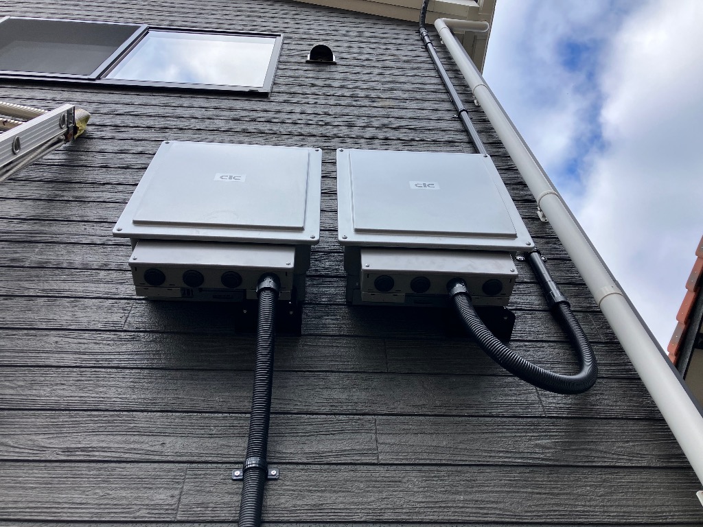 電工時は雨も降り出し、マスキングテープで雨養生してなんとか作業完了しました!