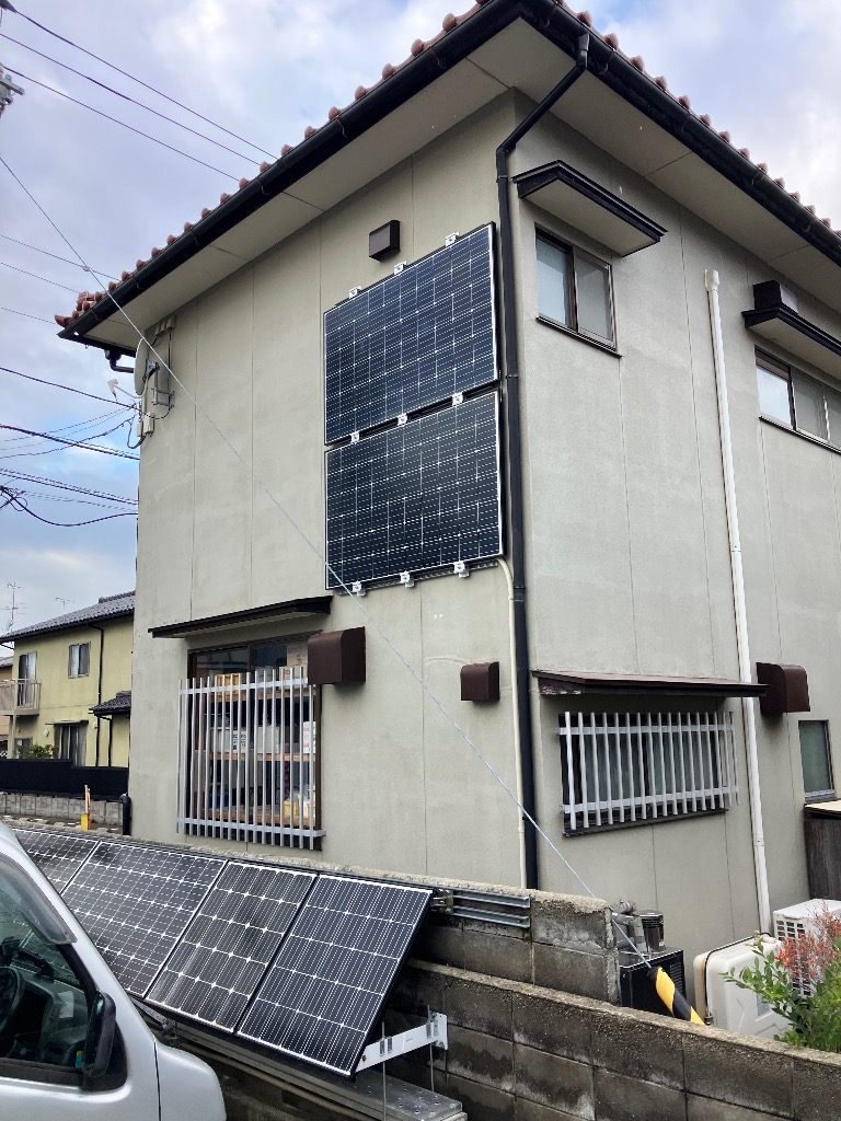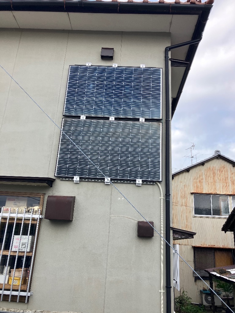 今回は金沢市の電気屋さんの倉庫の壁面に展示用で太陽光パネルを設置してきました。