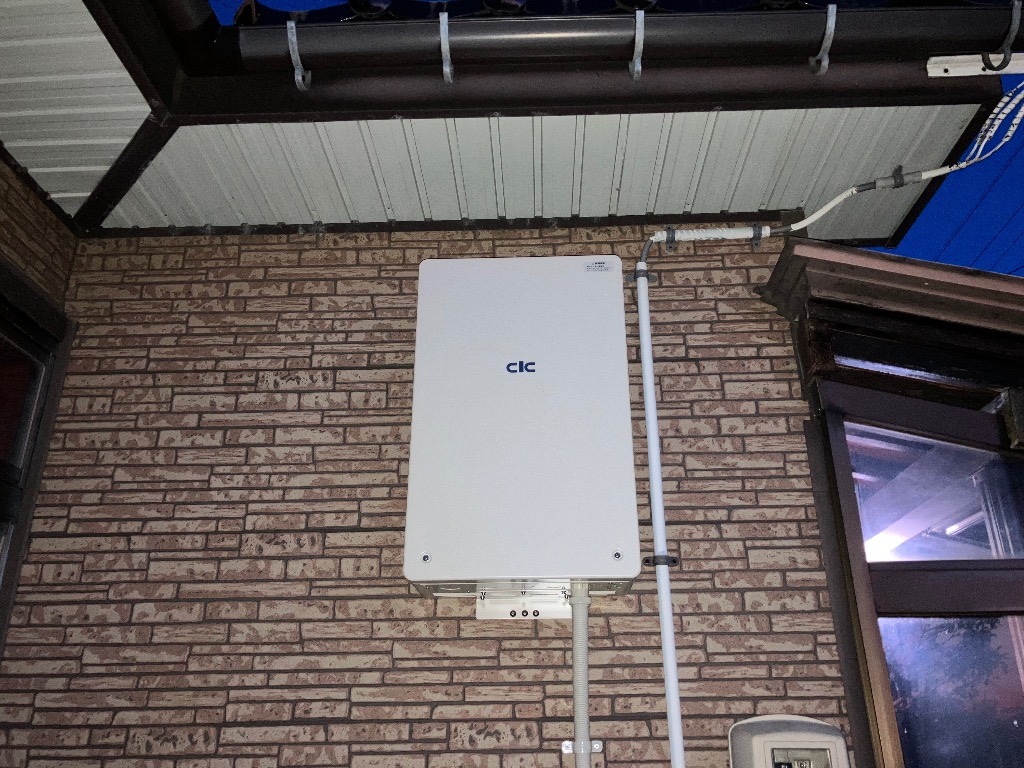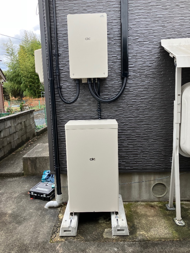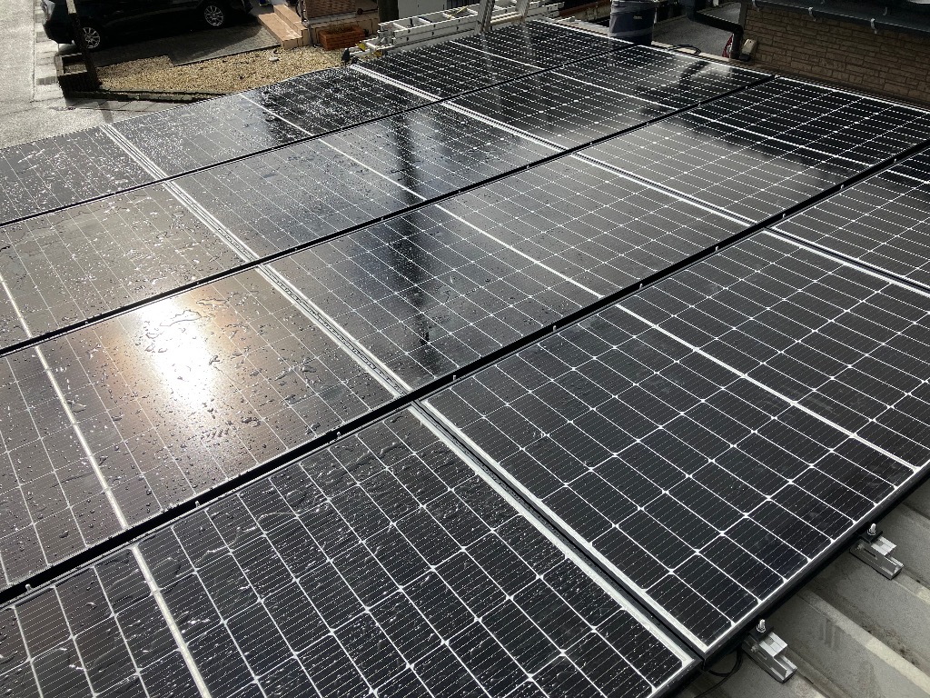 初日は雨模様でしたので、カーポートの屋根にパネルを設置して2日目にパワコンと蓄電池を設置しました。