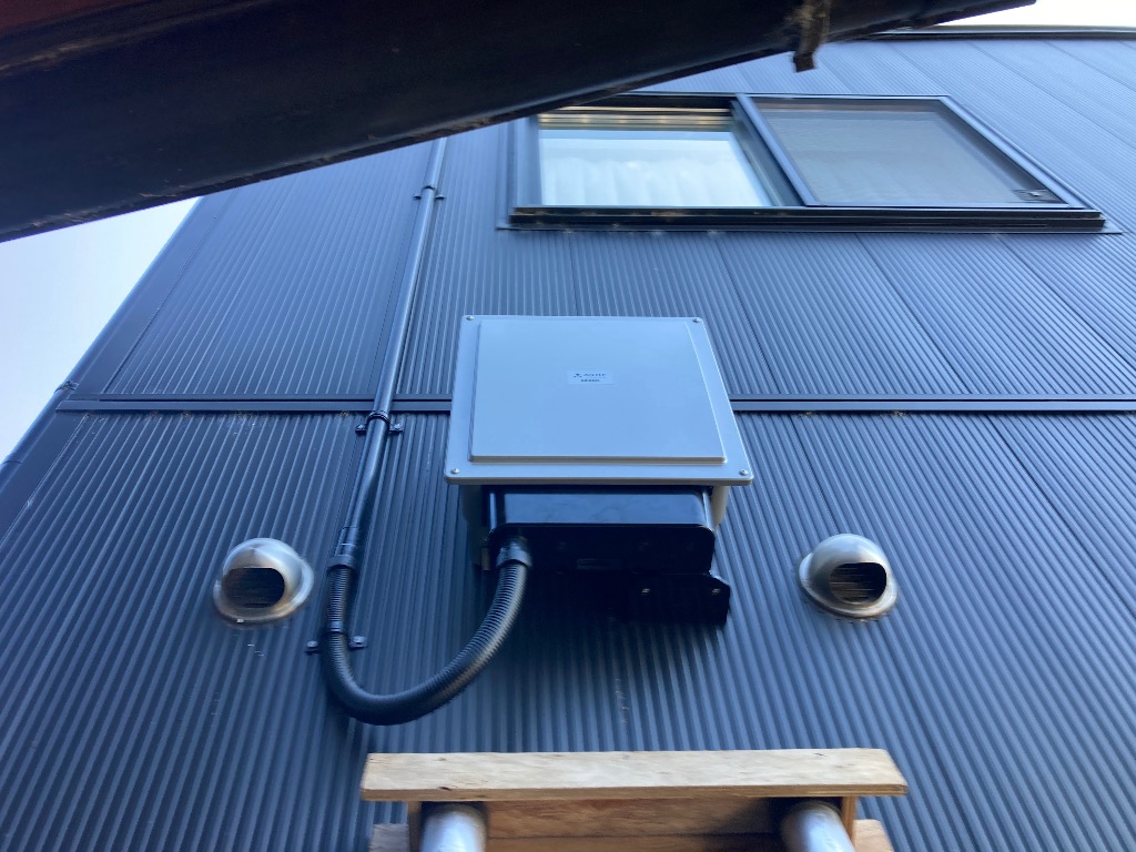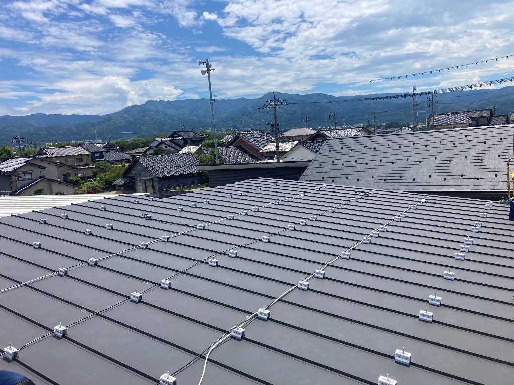 屋根は立平葺きに掴み金物、パワコンは2台設置です。