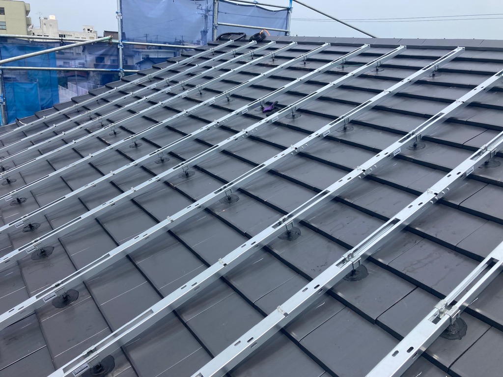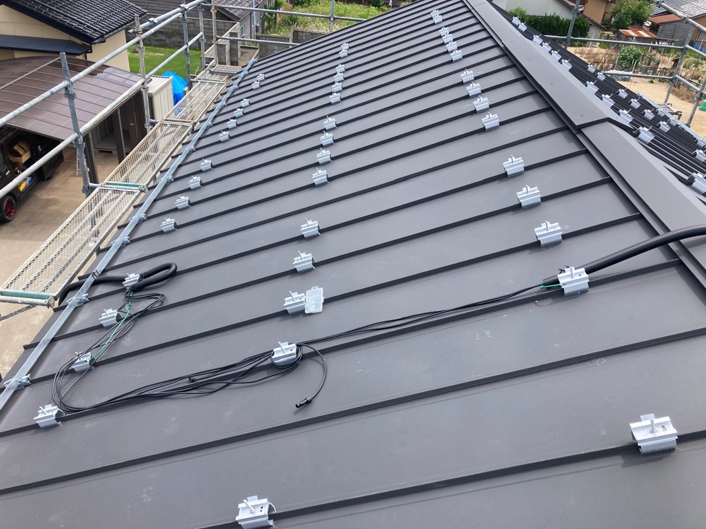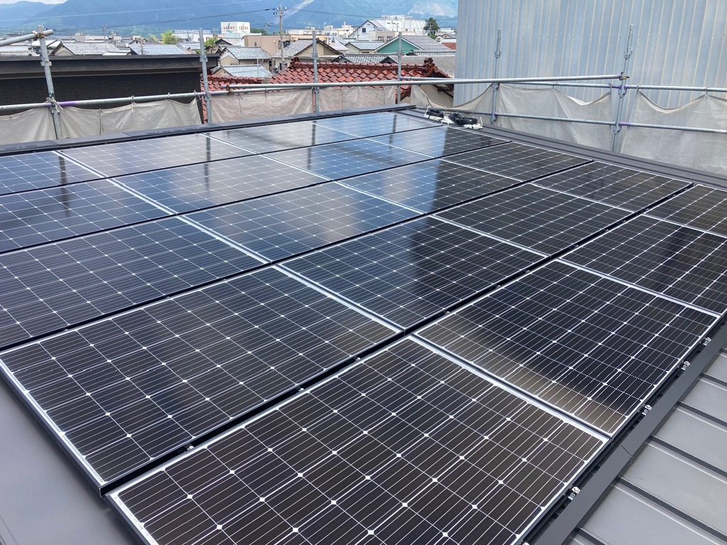 太陽光パネルの枚数は16枚と少ないですが、多雪地域のため支持点が多く、そこそこ時間が掛かりました(>_<)
