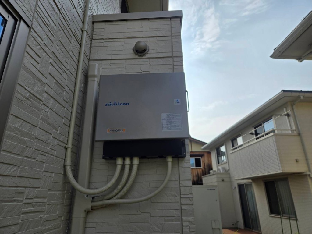 スレート屋根にパネル取り付けも久しぶりでしたが、ニチコンのトライブリットも久しぶりでした。